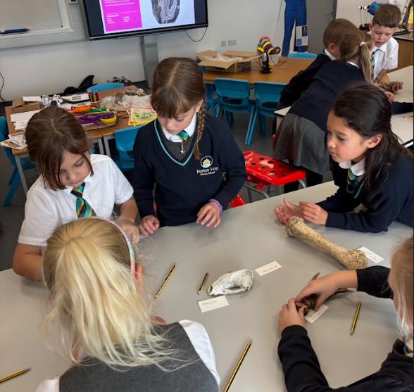 We recently participated in a Fossil Workshop. They brought in lots of real fossils for us to examine and compare. We also learned about Mary Anning and put our own Paleontology skills to the test by piecing together bone fragments and sketching what the creature would look like!